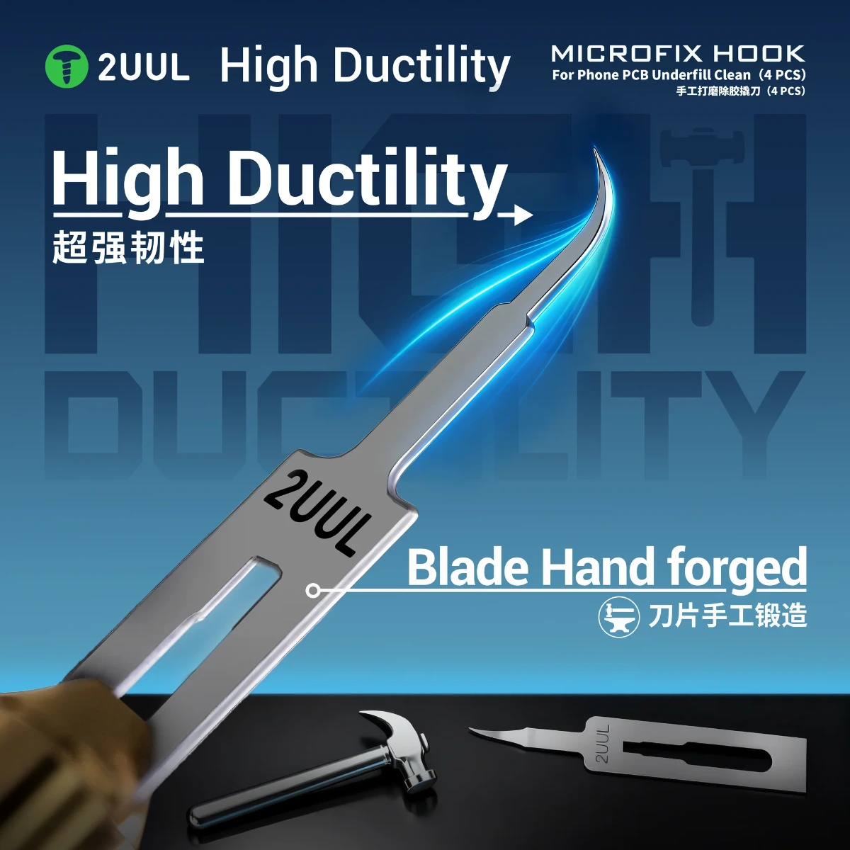 2uul BL01 MicroFix Hook Manual Sanding and Glue Removal Blades for Phone PCB Underfill Clean - 4Pcs