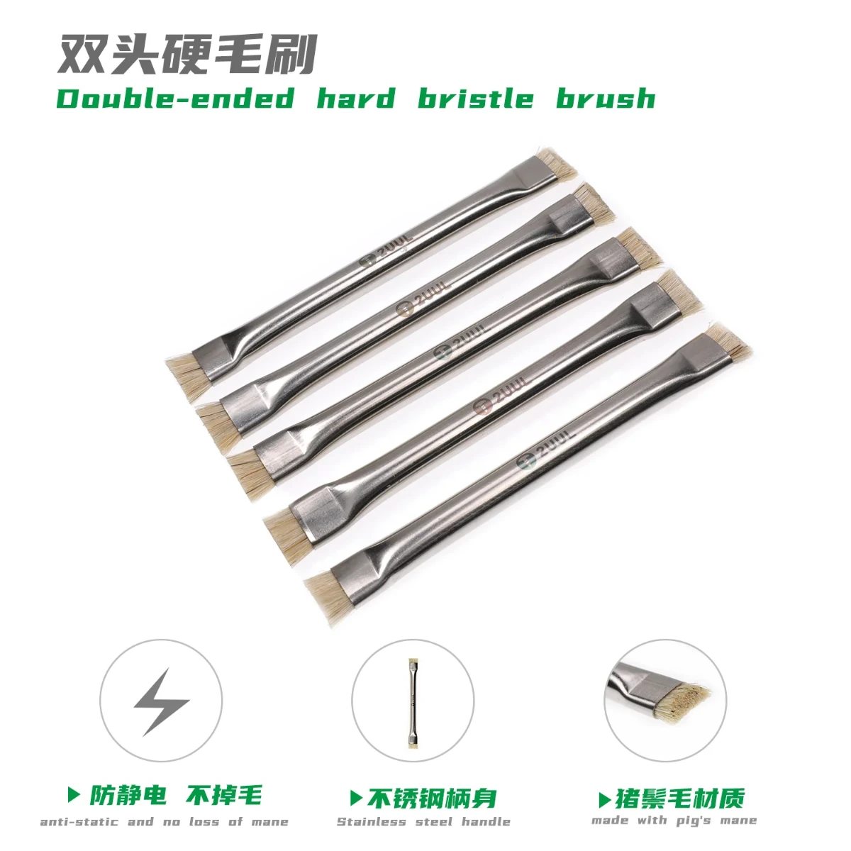 2uul CL11 Hog Bristle Dual Head Stiff Brush for Motherboard / Soldering Pad Cleaning