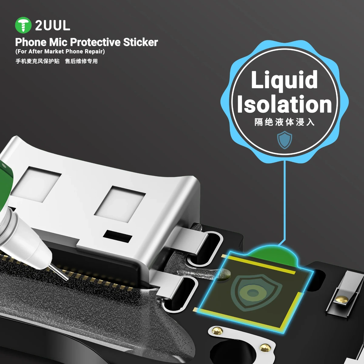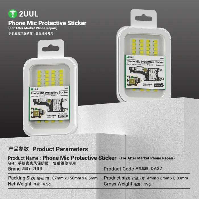 The 2UUL DA32 is a high-quality protective sticker designed specifically for safeguarding microphones during handset repairs. Coming in handy for repair technicians and electronics professionals, this ultra-thin, subtle pad offers an effective barrier against dust, moisture, and heat—without compromising device integrity