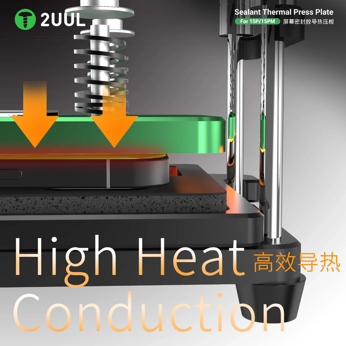 2uul DA65 Back Cover Sealant Thermal Press Plate for iPhone 15 Pro / 15Pro Max