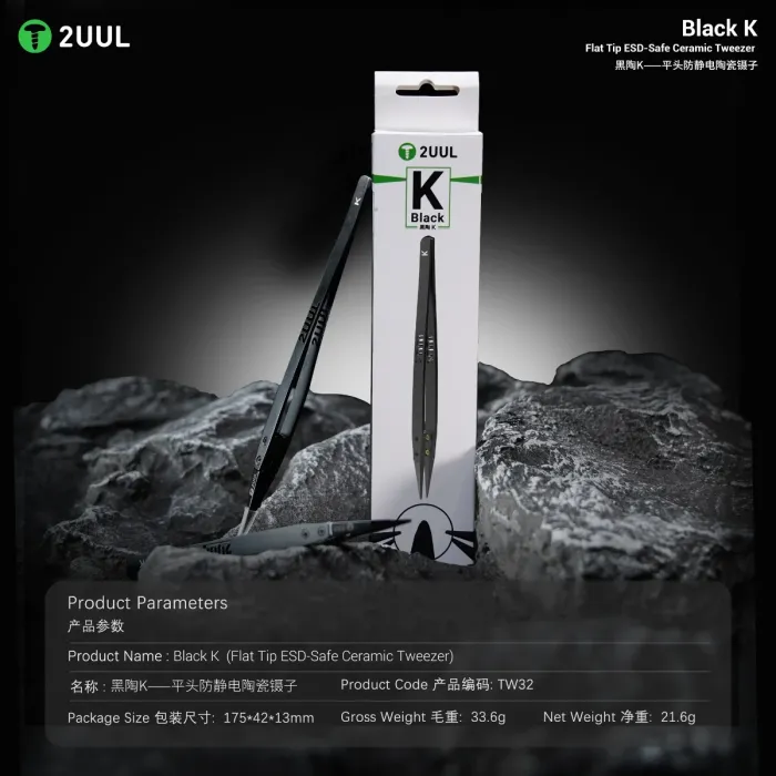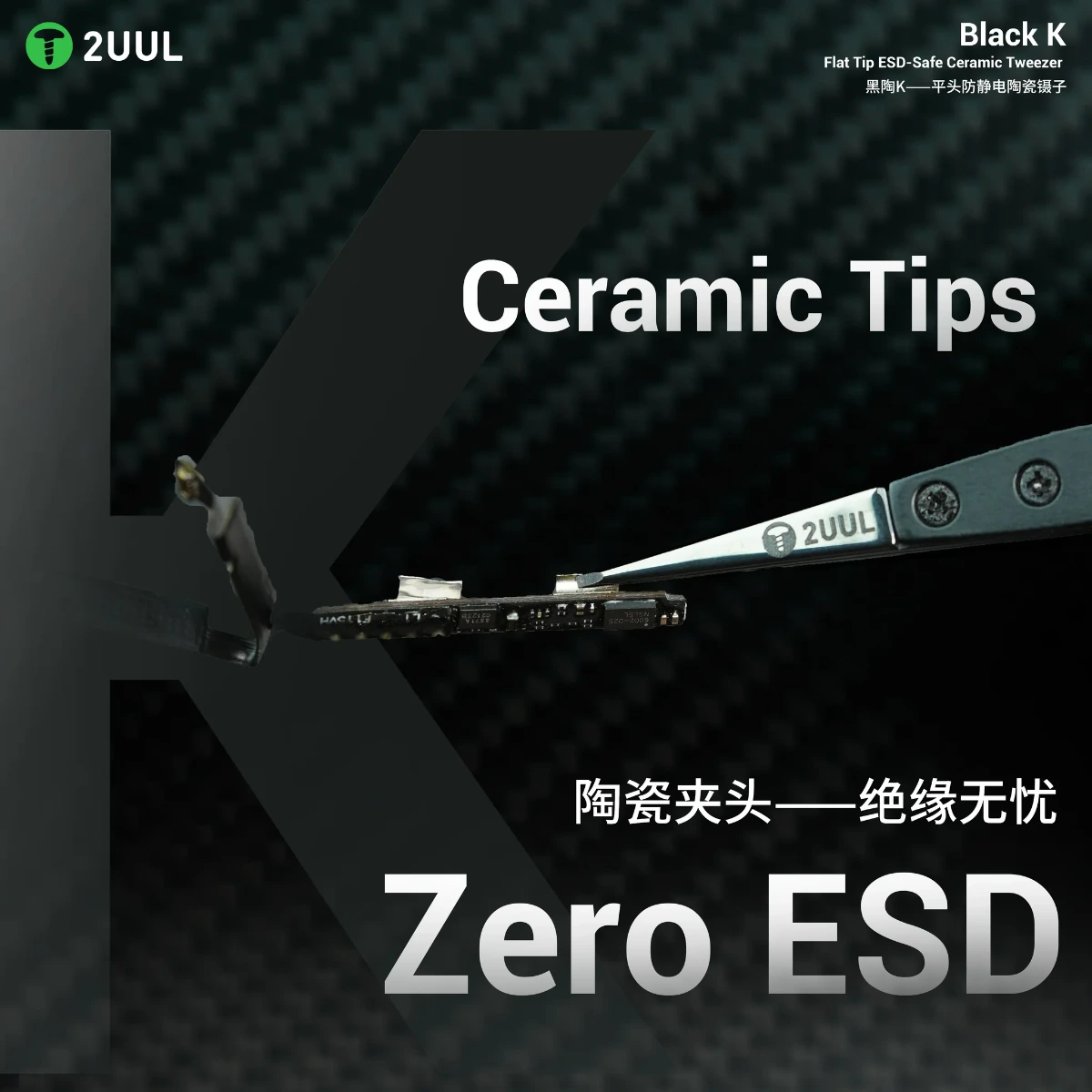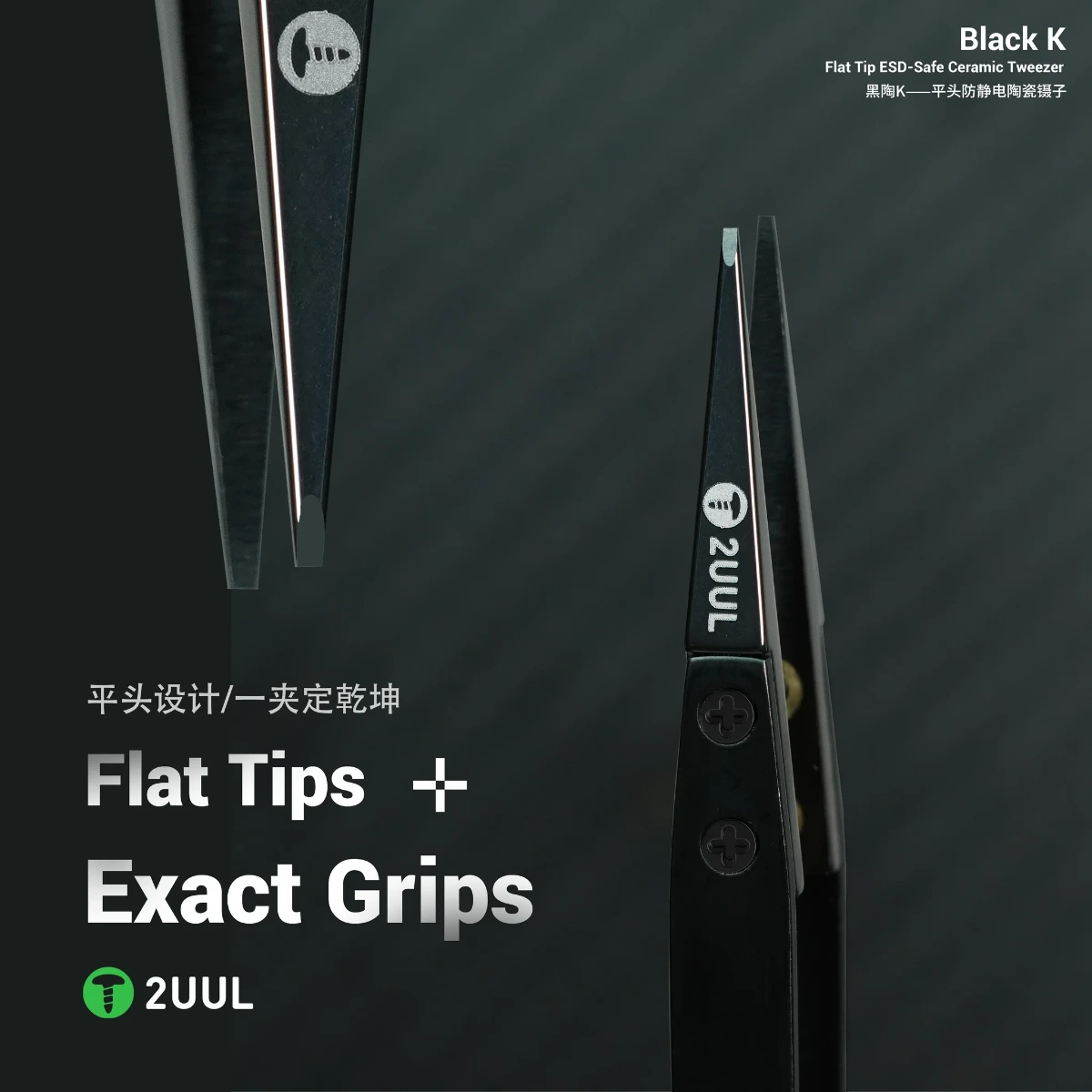 2uul TW32 Black K Flat Tip ESD-Safe Ceramic Tweezers