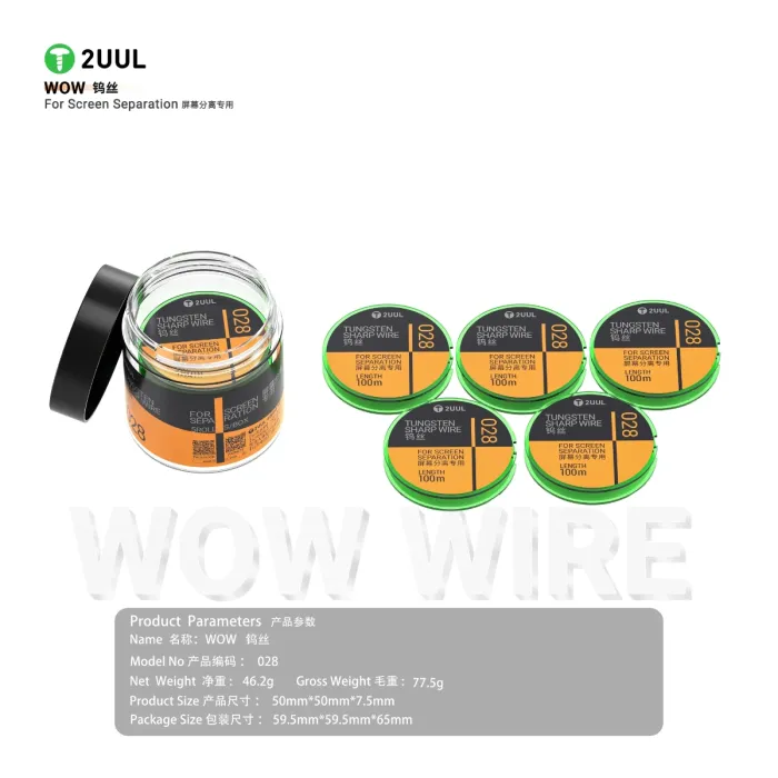 2uul WS-028 0.028mm Tungsten Sharp Diamond Wire for Screen Separation - 100M