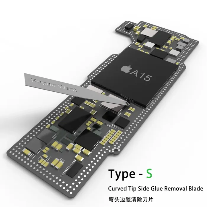 The second blade is the side glue removal blade. This blade is designed to help you remove the side glue that is often found around ICs. The blade is made from durable materials and features a specially designed tip that allows you to remove the glue without causing damage to the surrounding components.