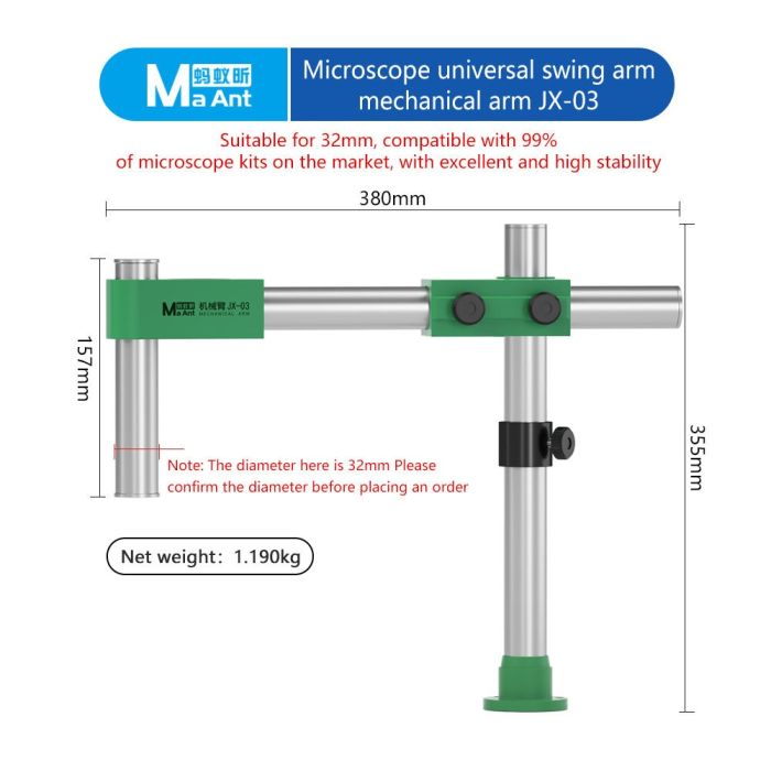 MaAnt JX-03 Mechanical Arm 360° Rotating Metal Microscope Swinging Arm for Most Microscope