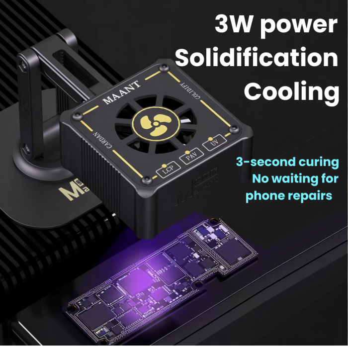 The Maant M066 Multifunctional UV Curing Lamp is a compact and powerful solution for curing UV glue during screen refurbishing and other electronics repairs. Designed specifically for use with OCA glue, LOCA, and UV adhesives, it features high-efficiency UV LEDs for fast curing and a built-in cooling fan to prevent overheating during continuous use.
