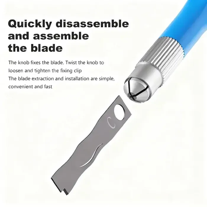 - Quickly disassemble and assemble the blade: The knob fixes the blade. Twist the knob to loosen and tighten the fixing clip. The blade extraction and installation are simple, convenient, and fast