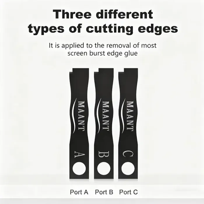- Three different types of cutting edges. It is applied to the removal of most screen burst edge glue