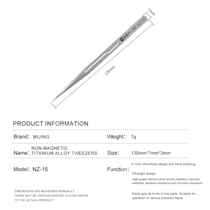 - Non-magnetic titanium alloy tweezers, 0.1mm ultra-sharp design and hand polishing, ultralight design