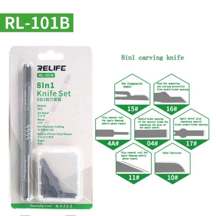 Relife RL-101B 8-in-1 Motherboard BGA PCB IC CPU High Toughness Remove Glue Knife Set