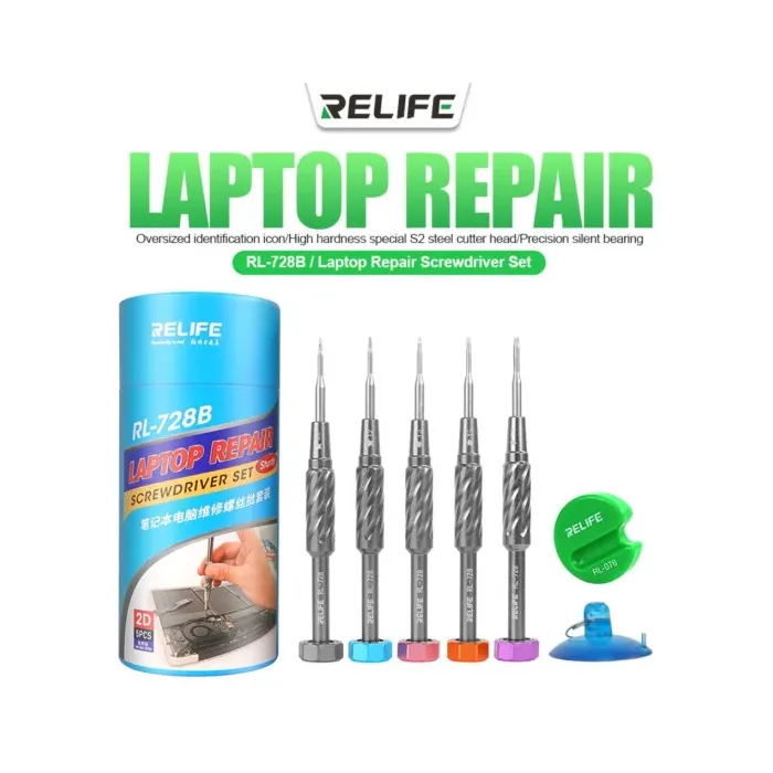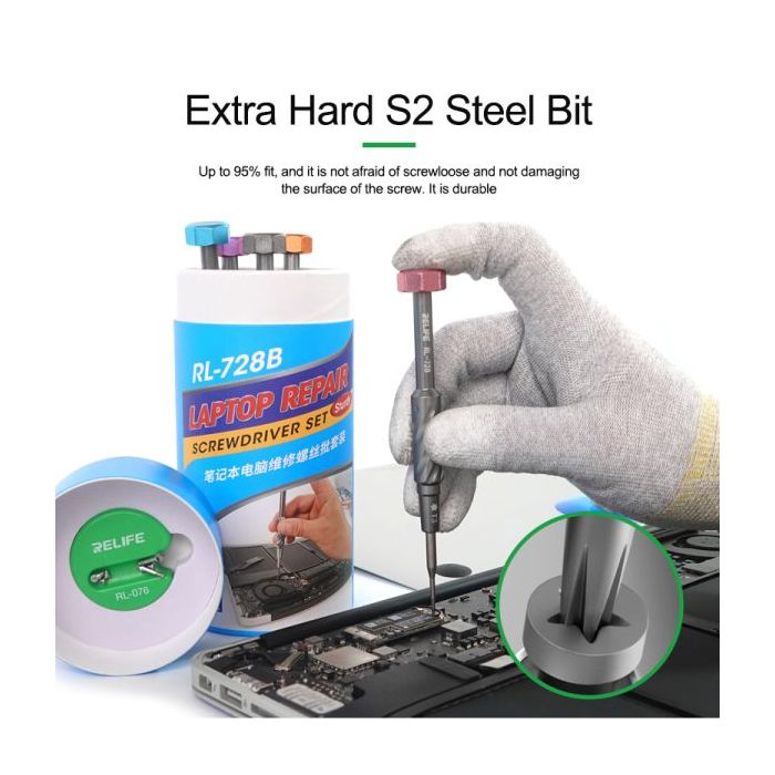 Relife RL-728B Strong Magnetic Adsorption S2 Bits Screwdriver Set for Laptop Motherboard Repair