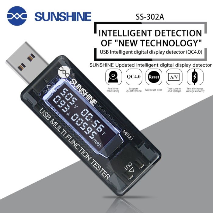 Sunshine SS-302A QC 2.0 3.0 4.0 LCD Current Voltage Charger Capacity Tester USB Charger Doctor Power Meter Text Voltmeter